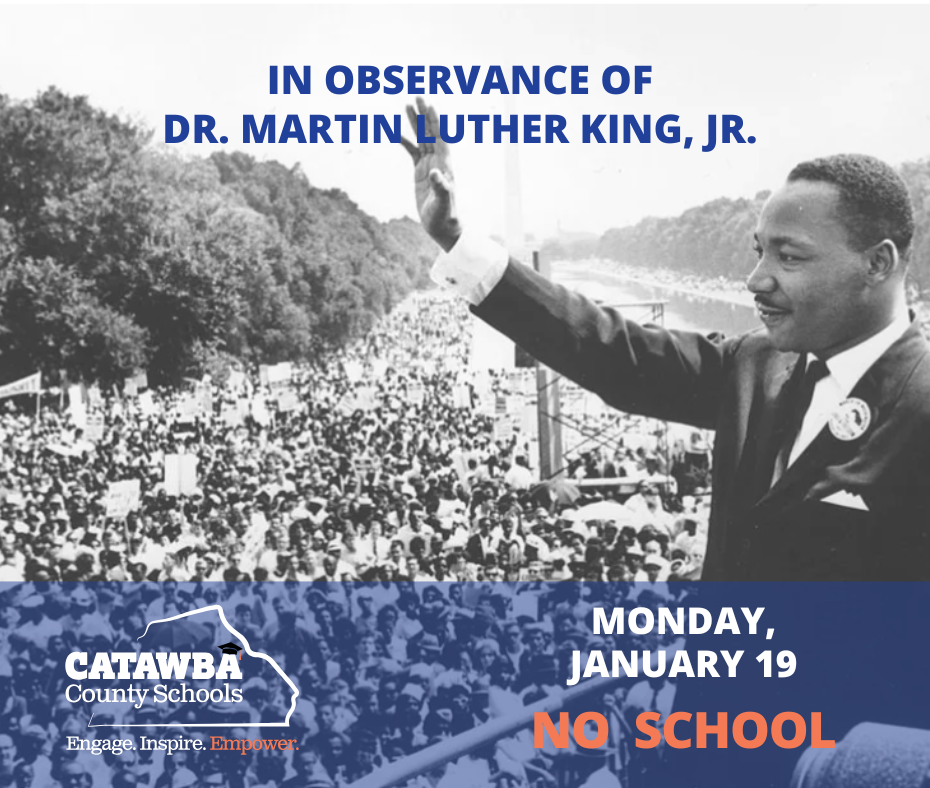 📅 School Closure – MLK Jr. HolidayCatawba County Schools will be closed on Monday, January 19, in observance of the Dr. Martin Luther King Jr. Holiday. Classes will resume on Tuesday. We hope our...